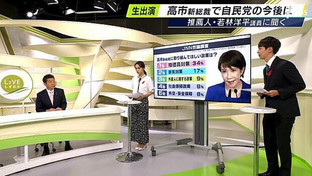 <LIVEしずおか 杉本真子 キャスター> 高市新総裁に取り組んでほしい政策についてきいたところ、物価高対策が34%。生活に一番近い部分の課題が一番多く挙げられました。 <滝澤キャスター> 物価高、本当に深刻ですが、街の人にも声をきいています。 【写真を見る】「ばらまく積極財政ではなく“責任ある積極財政”」推薦人・若林洋平議員に聞く高市新総裁の物価高対策 <40代女性> 「(物価高対策を)言