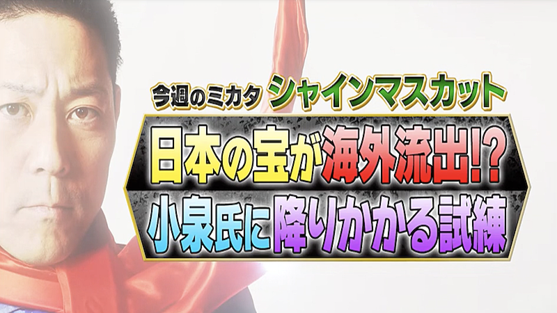 ニューストップ > 芸能ニュース > 芸能総合ニュース > シャインマスカットの苗木流出問題 農林水産省に「まずは輸出だろう… TVer テレビ 激怒 アナリスト 農林水産大臣 官僚 中国 小泉進次郎 農林水産省 山梨県 韓国 ABCマガジン シャインマスカットの苗木流出問題 農林水産省に「まずは輸出だろう」 2025年10月9日 7時0分 リンクをコピーする ©ABCテレビ 先週の“ステマ問題”に引き続き、小泉進次郎氏に新たな疑惑が。小泉氏を悩ませる新たな問題⋯⋯それは、“シャインマスカット騒動”だ。シャインマスカットは、日本原産の高級ブドウ品種。このシャインマスカットの栽培権を、農林水産省がニュージーランドへ付与しようとしているという。 この問題の背景には、日本で開発されたシャインマスカットの苗木が非正規に海外へと流出し、中国 記事を読む おすすめ記事 『ポケパーク カントー』来年2月5日開業で注意事項 ポケモン初の屋外常設施設で110段の階段を上れない人など入場できず 2025年11月11日 14時0分 JR東日本「Suica」のペンギン、来年度末で「卒業」…新キャラクターにバトンタッチへ 2025年11月11日 14時5分 【独自】広末涼子さん書類送検へ…時速180キロ超で追突事故起こしケガさせた疑い “双極性感情障害”で芸能活動休止中 2025年11月12日 17時31分 小野田紀美氏、安倍元首相銃撃事件の心の整理は「一生つきません」 被告を「山上さん」と呼んで質問する記者も 2025年11月11日 15時29分 愛子さまが母校の学園祭を男女グループでお忍び訪問、学生らが見た同行男性の“胸キュン”気遣い 2025年11月12日 8時0分