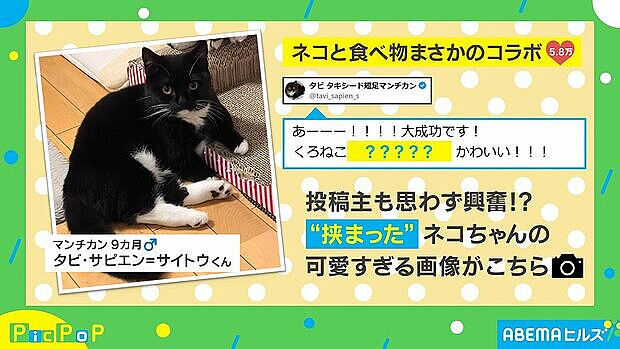 猫が“挟まった”可愛すぎる姿が話題になっている。【映像】「食べちゃいたい!」黒猫フルーツサンド投稿したのは、タビ タキシード短足マンチカンさん(@tavi_sapien_s)。猫のタビ・サピエン=サイトウくん(生後9カ月)が、フルーツサンド型クッションから顔を出した姿を撮影し、Xに投稿した。可愛すぎる!?黒猫フルーツサンド画像を見た人からは、「食べちゃいたい!」「ナニ味かなぁ?ゴマ味!?」「たべもの+動物がなぜ