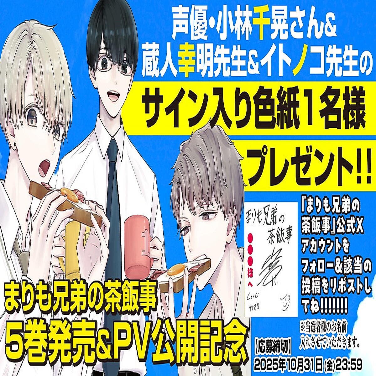 「週刊少年チャンピオン」で連載中の『まりも兄弟の茶飯事』のPVが10月8日(水)に秋田書店から公開された。 【画像】イケメンなのにポンコツすぎるアイドルマネージャーのドタバタコメディ『まりも兄弟の茶飯事』を試し読み 『まりも兄弟の茶飯事』の最新第5巻発売を記念して、人気声優・小林千晃が主人公の三つ子(壱吾・弐吾・参吾)を演じるPVを公開。今回のPVでは、小林が若手芸人・壱吾、スーパ