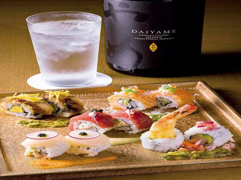 全店実食調査!『おとなの週末』が自信を持っておすすめするお店をご紹介します。今回は、東京・銀座一丁目のダイニングバー『GINZA SEN-RYO』です。【焼酎×寿司】ロール寿司の多彩な味と軽快な「だいやめ」が生むため息出る旨さ場所は銀座でビル6階、高級感ある内装、料理は寿司に和牛やラムのグリル、一品料理と充実。酒も日本酒ウイスキーと多彩。それでいてリーズナブル。まさに大人の隠れ家、それがダイニングバー『GINZA