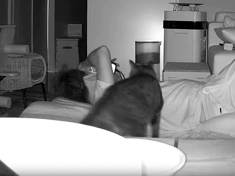 • 夜に、飼い主のもとにやってきた猫の行動がペットカメラに捉えられた