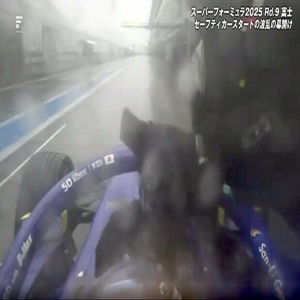 【スーパーフォーミュラ】第9戦(決勝・10月11日/富士スピードウェイ)【映像】ピットで発覚!“付けっぱなし”→取り外す信じ難い光景週末2連戦ともに雨に翻弄された日本最高峰のレース。雨量の多さからセーフティカー先導で周回するなか、小出峻(San-Ei Gen with B-Max)が3周目で急遽ピットイン。その理由は“信じ難いミス”だった。11日午前に行われた予選から雨が降り続いた富士スピードウェイ。セーフティカー先導でレ
