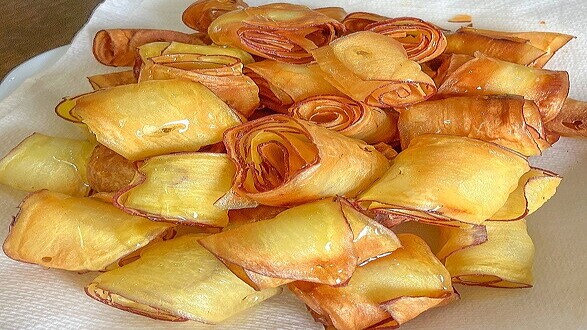 サツマイモのおいしい季節がやってまいりました。焼き芋、天ぷら、大学芋など美味しい食べ方はたくさんありますが、今回は、ちょっと新しいおやつレシピを紹介します。教えてくれるのは、神奈川県三浦半島でさつまいも、枝豆、とうもろこし、ブルーベリー等の生産・販売を手掛ける「岩崎ファーム」さんです!さつまいもをスライサーで薄く切り、丸めて爪楊枝で固定。180℃の油でこんがり黄金色になるまで揚げ、ハチミツをかけると、