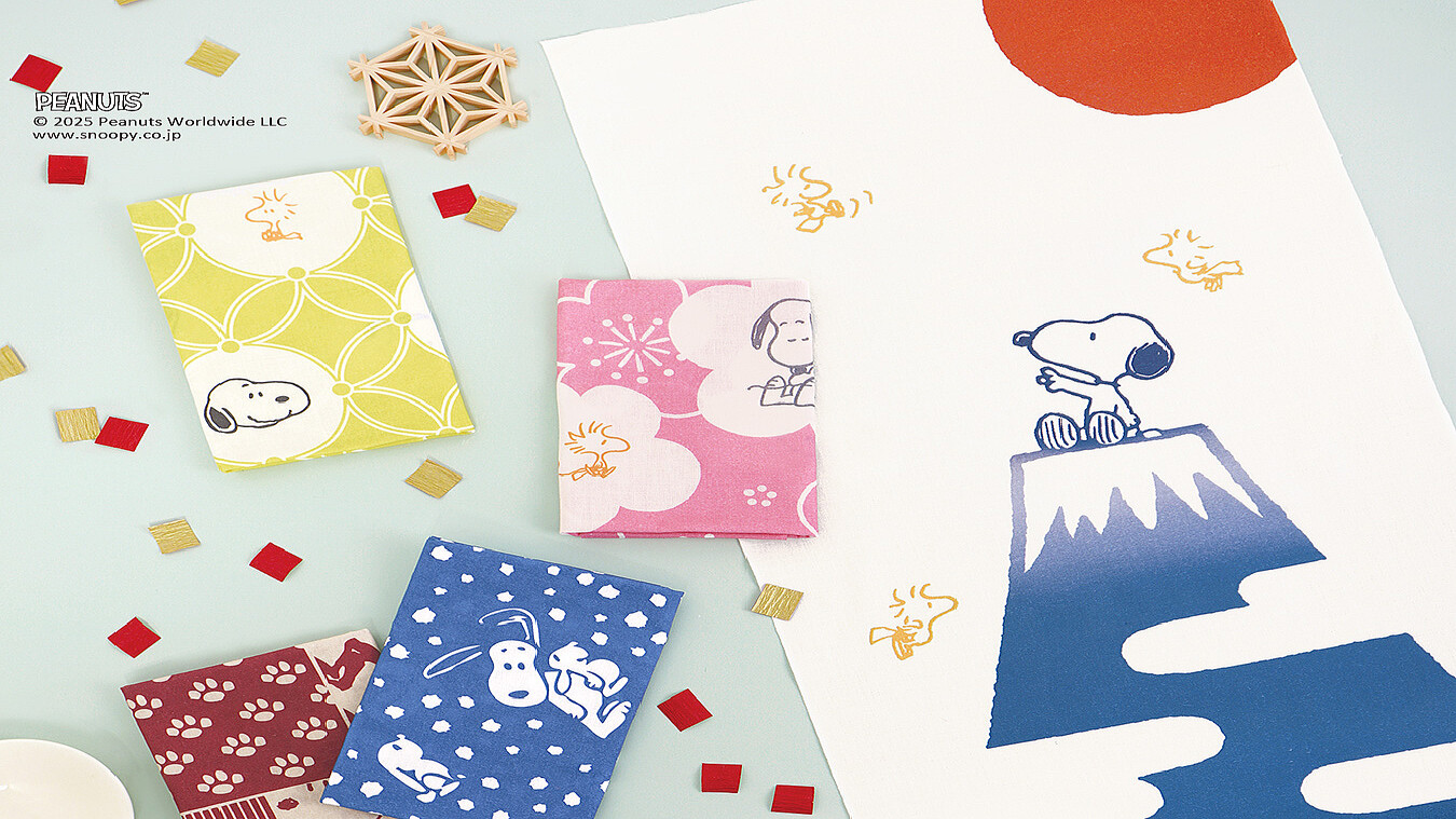 さまざまな手ぬぐいや風呂敷を販売する「かまわぬ」から、「PEANUTS」かまわぬ限定シリーズ第8弾が発売されます。「PEANUTS vol.8」では、世代を超えて世界中で愛されているスヌーピーと仲間たちが、ホリデーシーズンにぴったりな和のモチーフを基調とした手ぬぐいになって登場。吉祥文様でもある富士山や梅といったお正月にふさわしい華やかなモチーフをはじめ、2026年の干支デザインやコミック誕生75周年を記念した限定柄など、