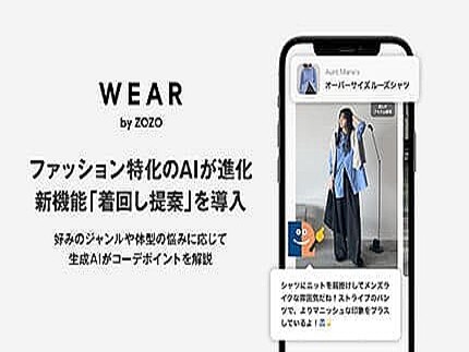 ZOZO、ファッションコーディネートアプリ「WEAR」にAIが体型の悩みなどに応じて着回しを提案する機能を追加BCN+R