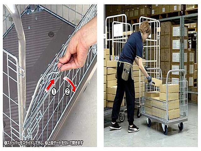サンワサプライ株式会社は、積荷重量約300kgに対応し、荷物の出し入れと運搬がスムーズに行える台車「CART-FA13GY」を発売する。左右に取っ手が付いており、安定してどちら向きでもハンドルを握って移動できる。かごの四面のうち一面は網のストッパーを操作することで2段階の高さで開閉できる。本体の荷台の四隅は衝突してもキズ付きにくい丸みを帯びた構造をしており、安全に使用できる。工場や物流での使用に最適だ。■荷物・資