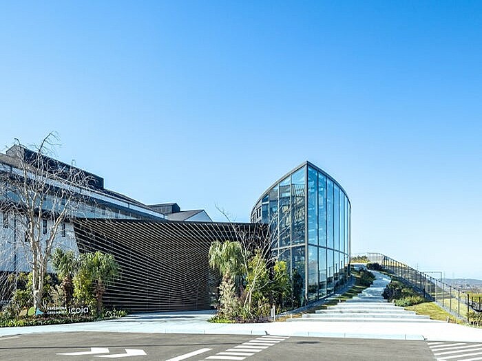 - 「都城の自然と文化に溶け込む」をテーマに、シラスを用いた建築美が光る
