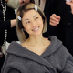 工藤はガウン姿で、髪の毛も後ろでまとめただけの「寝起き」姿を見せている
