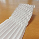 テーブルの上に蛇腹状の折り目の先がさらにジグザグに折られた紙がある