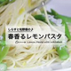 フライパンでにんにくとしらすを炒めて、鶏ガラとパスタのゆで汁を加える