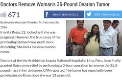 女性は体重増加に悩んでいたが、実は重さ13kgの卵巣腫瘍を抱えていたという