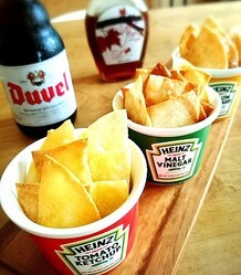トースターで焼いた餃子の皮を、好みに味付けした「簡単チップス」