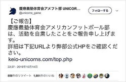 無期限活動自粛の慶応アメフト部をOBが告発「マフィアみたいだなと」